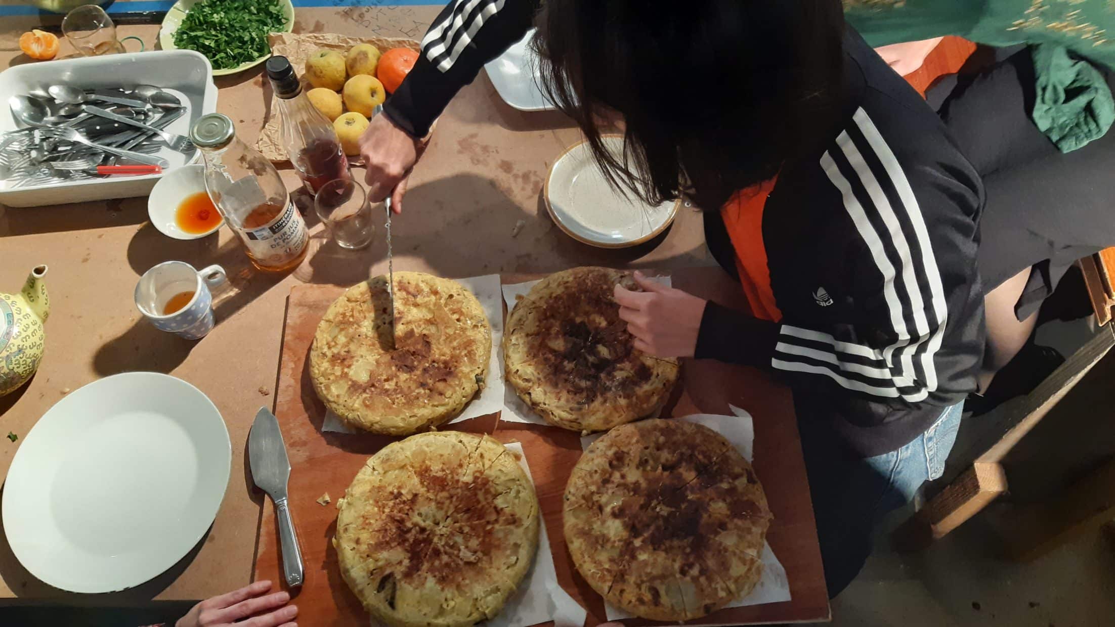 Rémy dit : « C’est une galette ? C’est une omelette ? C’est une sorte de crêpe ? Une truffade rondelette ? Rien de tout ça cabeza tontita c’est une tortilla ! Si tu veux, je peux t’apprendre à la cuisiner, tu feras donc parti du voyage de la recette de mon abuela, ma grand-mère de Peñaparda »